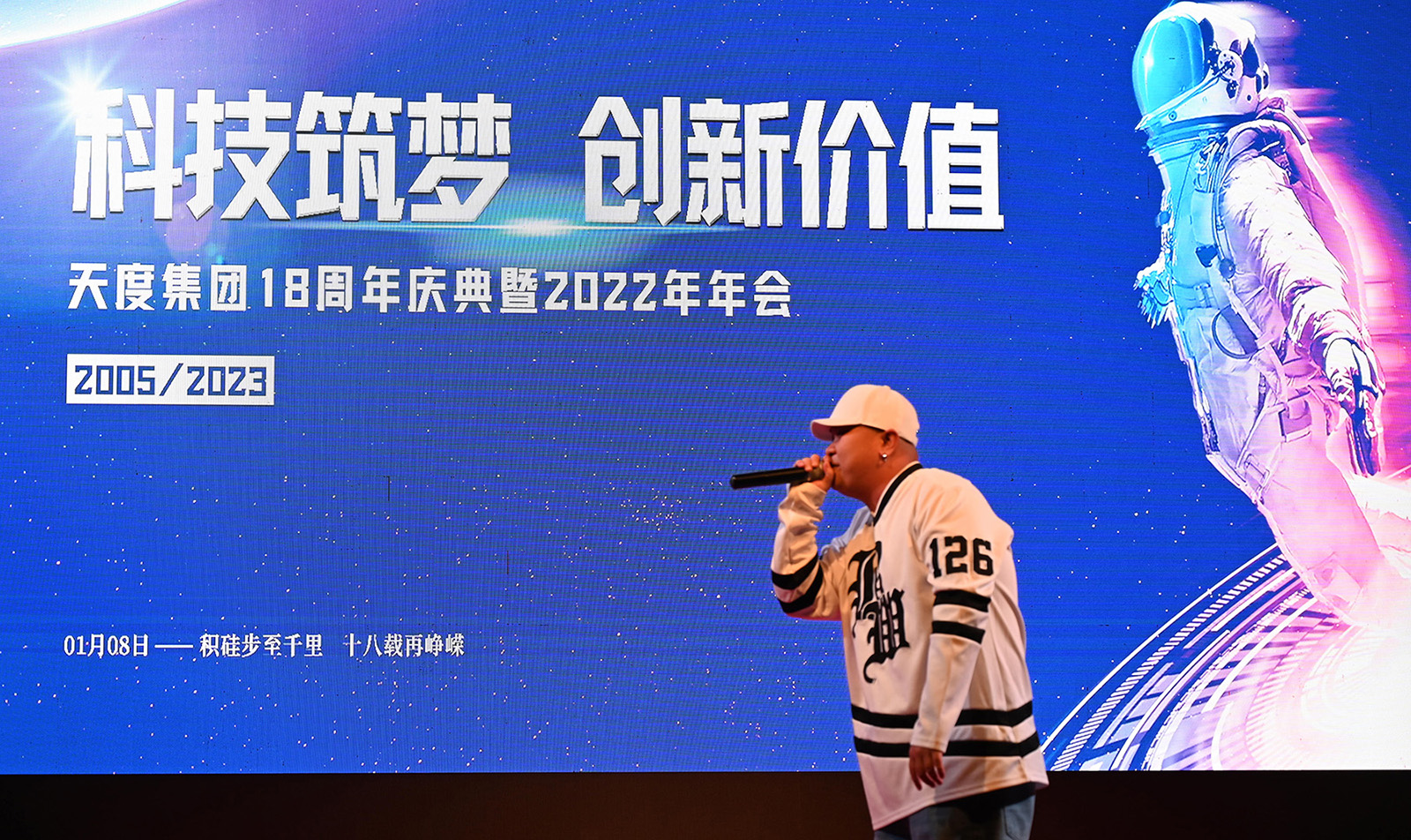浩瀚宇宙、璀璨星际,以元宇宙为主题的舞台布景绚丽多彩;默剧、变脸、乐器、小人舞,主题多样的节目表演精美绝伦;回首过往、立足当下、展望未来的董事长演讲振奋人心;奖爱岗敬业、优秀员工的颁奖典礼树立集团模范;还有一轮轮的抽奖环节,将年会盛典推向一波又一波高潮。